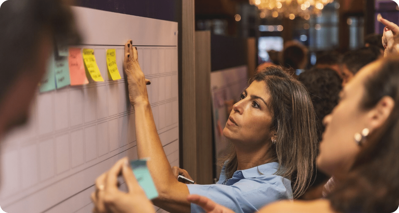 As dinâmicas foram cuidadosamente desenhadas para estimular colaboração, co-criação, fortalecimento de marca, visão de cliente no centro e aplicação de ferramentas de design thinking, transformando conceitos em ações práticas.